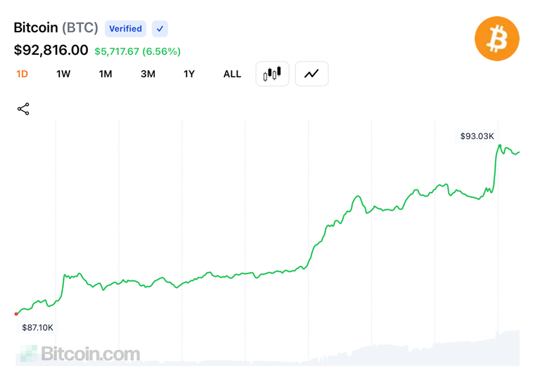 On Tuesday evening, at around 5:45 p.m. ET, the cryptocurrency market witnessed an explosive moment when Bitcoin (BTC) hit an intraday high of $93,928 – its highest price since March. This was a remarkable jump of 6.5% in 24 hours and more than 10% in just one week, bringing the world’s largest cryptocurrency back into the global investor spotlight.