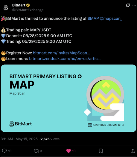 As the crypto market is gradually emerging from its hibernation phase and entering a recovery cycle, global investors are starting to shift to projects with solid foundations, practical applications, and transparent teams. Among them, MAP Coin - a representative of the MapNode ecosystem - has emerged as a top choice after announcing that it will be listed on BitMart on May 29, 2025.
