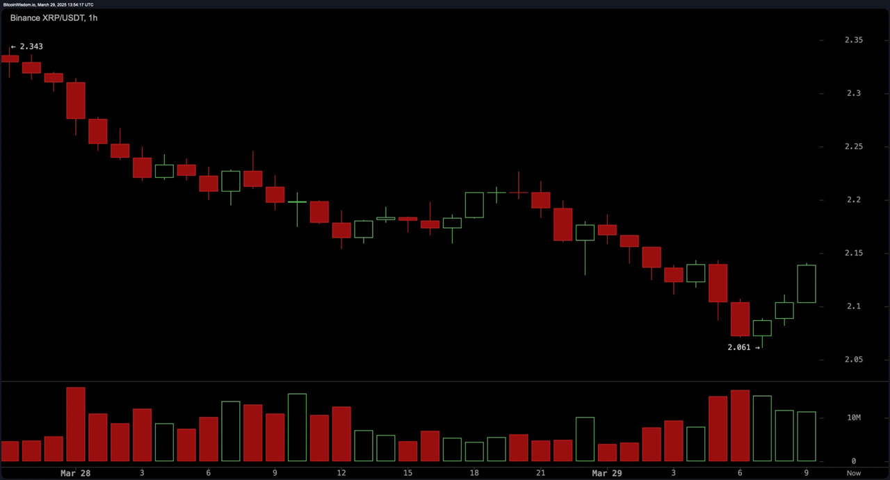 Currently, XRP is trading between $2.11 and $2.13 over the past hour, with a market cap of $123 billion and a 24-hour trading volume of $3.39 billion. Traders are facing a volatile market as XRP fluctuates between $2.06 and $2.22, driven by conflicting technical signals.