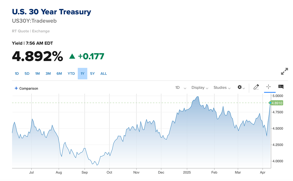 As of Wednesday morning, the 30-year Treasury yield was 4.892%, while the 10-year yield was 4.435%. The sharp move has sent money out of stocks and into bonds, which are considered safer in a volatile environment. The resulting downward pressure has spread across the stock market, hitting pension funds and long-term investors.